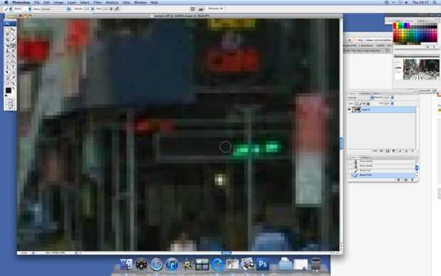 El zoom donde sea necesario y utilizando la herramienta Pincel, desmayó todas las luces. (foto1)