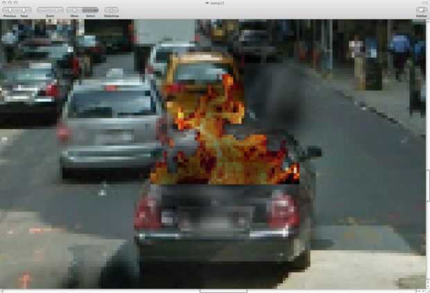 Abrí dos imágenes de fuego en Photoshop y retirar los fondos con la herramienta Borrador mágico, dejando sólo las llamas mostrando.