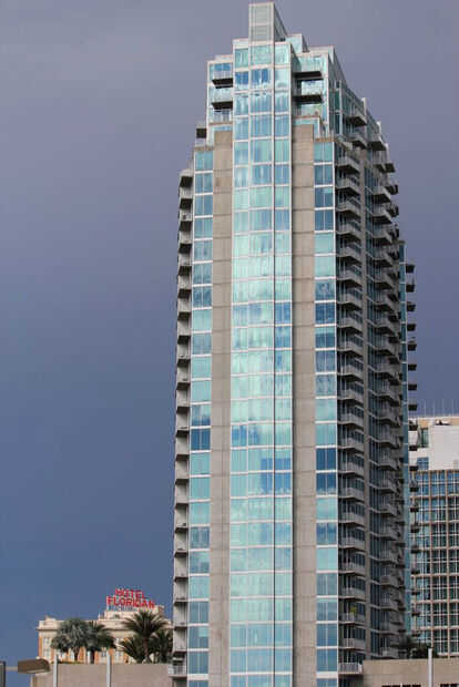 Así que después de decirte sobre esa regla de los tercios, experimentar con romperlo. Ir fuera del centro a experimentar con maneras de dar un sentido de tamaño y alcance. En la vista del edificio alto de vidrio, fuera de serie un poco, usted puede ver en la parte inferior izquierda la parte superior de un antiguo hotel llamado el Hotel Floridan. Desactivado el edificio a su lado es una manera de mostrar la diferencia entre el centro de la ciudad vieja y nueva construcción.
