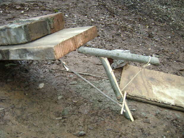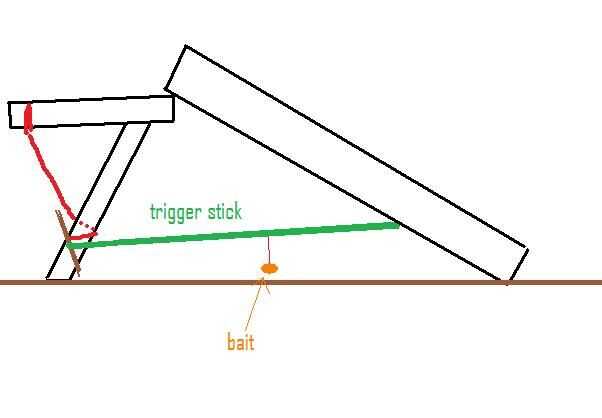 tomar su bastón de apoyo y coloque el extremo sin el cable encima del vertical y coloque el borde de sus caídos en el palo de apoyo. Ahora sostenga el cable firmemente para que el palo de soporte no defraudará los caídos. luego poner el cable alrededor del vertical como en la imagen y mantenerla. Ahora estás listo para colocar la palanca del gatillo.