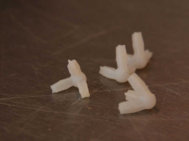 como un seguimiento a mi post original sobre un 3D impreso construccion paja, he hecho una nueva forma del conector. Este nuevo conector se une a tres pajas en un vértice para que cada pajilla es 60 grados de los otros dos, de esta manera usted puede construir tetrahedrals y otras formas de triángulos equiláteros. Imprimí este conector con una impresora de epilog (el gran premio de la marca lo Real desafío!)