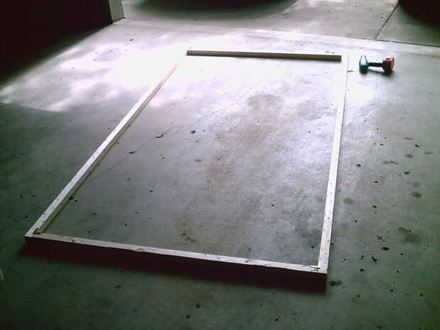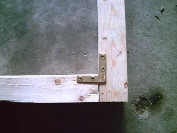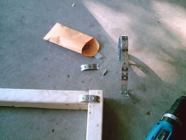 Al principio que probé con soportes de ángulo para construir el marco pero rápidamente se dio cuenta de que podía construir un marco más fuerte y más barato simplemente utilizando cinta de fontaneros (fleje de metal) para todas las articulaciones y olvida los soportes de ángulo de cobre amarillo en conjunto. Sería apenas tan fuerte y un heck de mucho más barato.