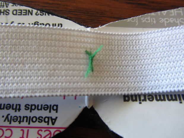 2. Coser el elástico en bucle lo suficientemente grande para estiramiento sobre el portador del saber.