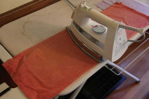 La parte rugosa/baches de la interfaz es lo que se derrite. Coloque esta parte plana contra el "lado equivocado" (que significa el lado que no sea bonito) de la tela.