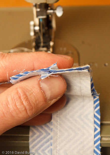 1. Corte cada lazo la mitad. Práctica habitual es dejar un margen de 1/4" entre tus puntadas y el borde de la tela. Tiendo a cortar un poco más cerca. Sin embargo, a lo largo de las dos líneas de lápiz sin costura, deje un completo 1/4" como facilitar su doble bajo más adelante.