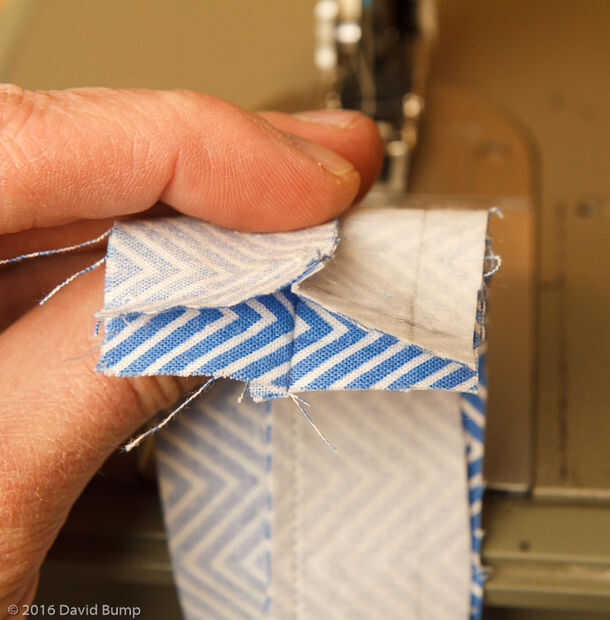 5. Se trata de un montaje difícil, pequeño de tela para prender para sostenerlo mientras se cose. En cambio, sólo mantenerla sujeta entre los dedos hasta que pueda soltar el pie en él y coser a lo largo de la línea de lápiz. Nota que la mitad de su tela con la entretela no se adhirieron a él no tiene una línea de lápiz, mantenga a coser en consonancia con el medio que tiene una marca. Como siempre, empezar y terminar la costura por costura sobre tus puntos.