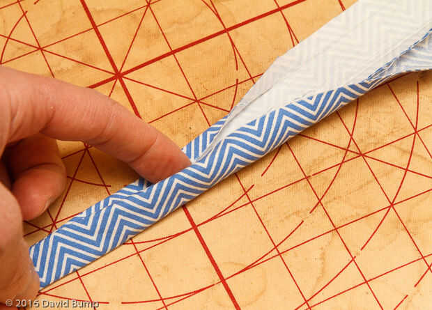 2. En el centro del lazo doble las costuras hacia atrás, exponiendo el lado Mostrar la tela derecha a lo largo de la línea central. Este plano de hierro