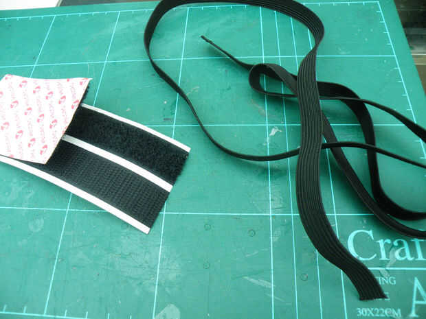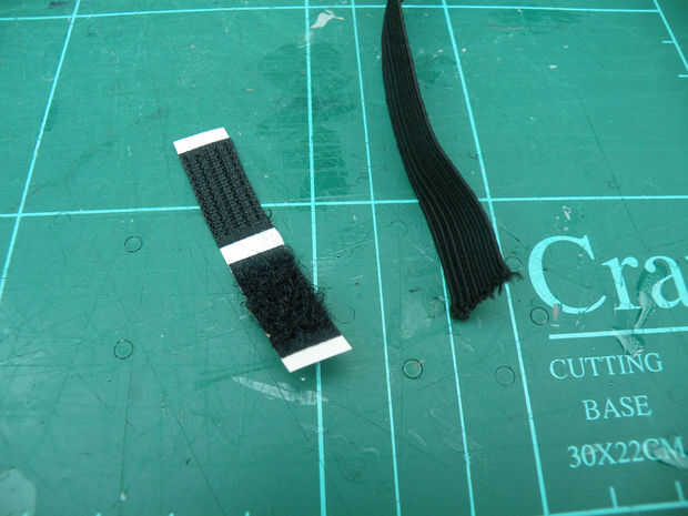 Usé un pedazo de elástico ancho de media pulgada de nuestra tienda punto local, con un trozo de Velcro de la misma fuente.