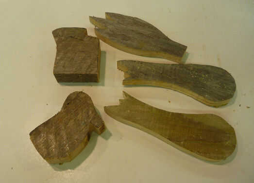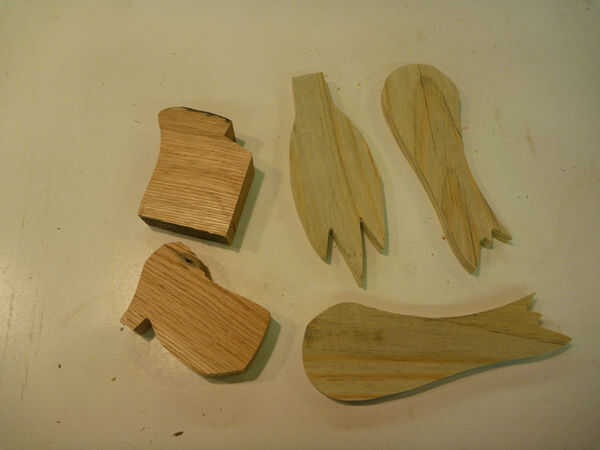 Ahora que has conseguido las piezas transferidas a su madera, utilizar tu rompecabezas o sierras de banda para cortar hacia fuera. Tómese su tiempo y trate de ser tan exacto como usted puede - le ahorrará lijar después. Para las alas, usted necesitará dos que se cierran a idéntico, así que uso unos doble cara cinta adhesiva o un par de tornillos para unir dos piezas de madera por lo que se pueden cortar ambos a la vez.