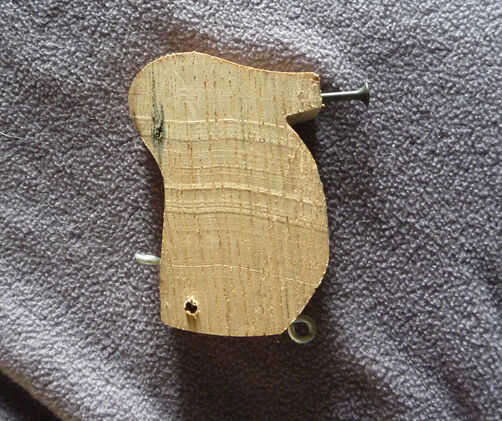 - Detener para taladrar el agujero piloto en el cuerpo para la primavera. Si haces esto después de que el pájaro está montado, usted tendrá una mejor idea de la colocación exacta.