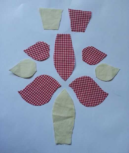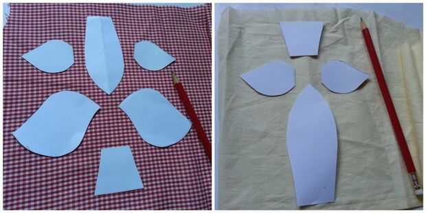 Cortar las piezas de la plantilla y colocarlos sobre la tela necesaria, trace una línea alrededor de los bordes y cortar piezas de tela.