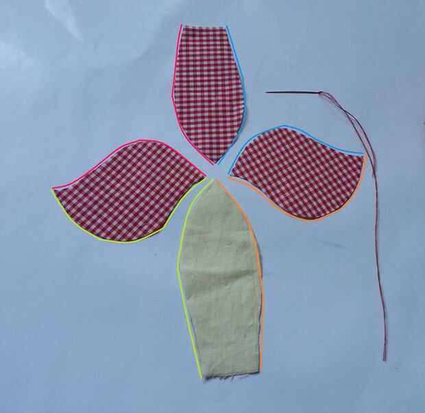 * Coser los lados, manteniendo el revés contra los tejidos hacia fuera y después termines cosiendo el área coloreada (marcado) resultan del lado derecho.