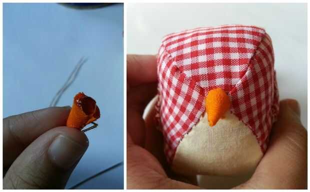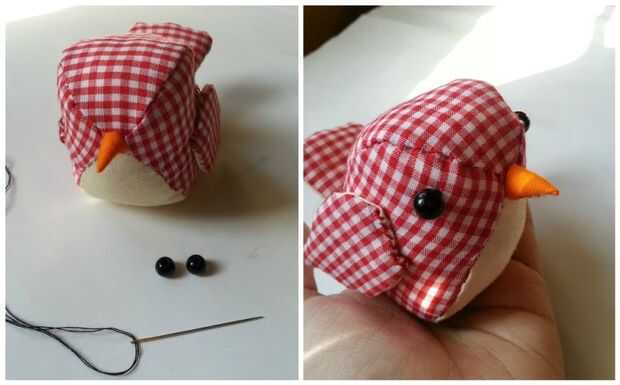 Simplemente conecte 2 pequeños granos negros con aguja e hilo para los ojos.
