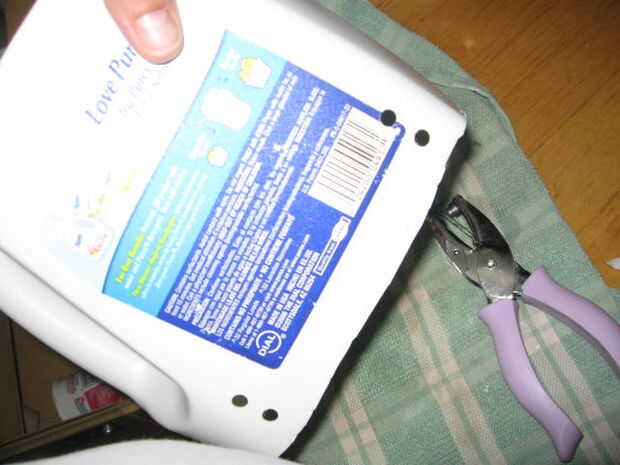 Usar SHARPIES para marcar mis agujeros primero directamente sobre la botella, así sé cuánto las quiero, y a qué distancia quiero los dos agujeros juntos, etc... y cuando estés satisfecho con la colocación de los agujeros de sacador hacia fuera, sharpie se quita fácilmente con alcohol!