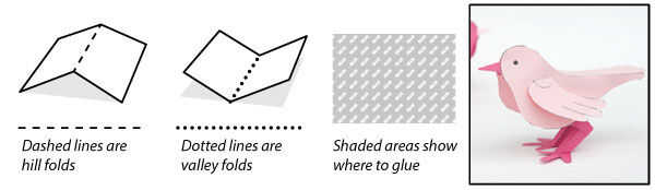 Imprimir las piezas en tarjeta fina. 230 micrones / 67lb es ideal. Marcar las líneas de puntos y trazos y corte a lo largo de las líneas sólidas antes de cortar las piezas con cuidado.