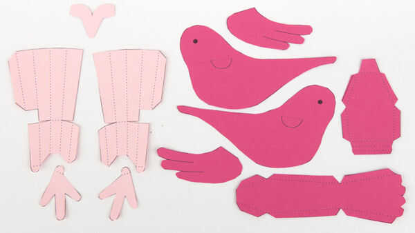 Para hacer el ave más colorida, imprima dos veces en la tarjeta de colores complementario. Cortar ambos conjuntos de piezas y luego utilizar las piernas, pies y pico de un color y las partes restantes de otro color. Una vez que haya terminado usted puede hacer un pájaro coincidente y complementario con el sistema restante de piezas.