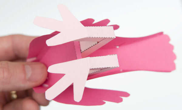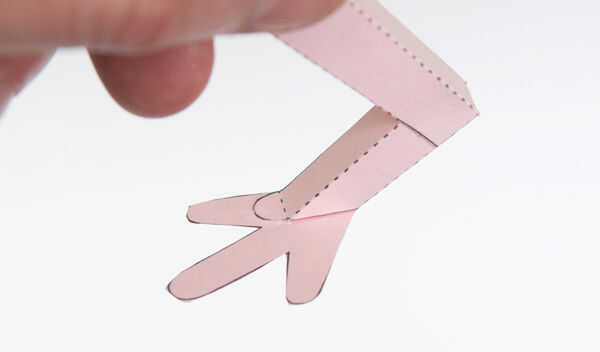 Pegar las patas al cuerpo interior. Utilizar las áreas de pegamento gris para alineación.