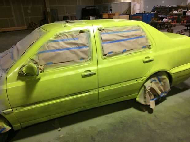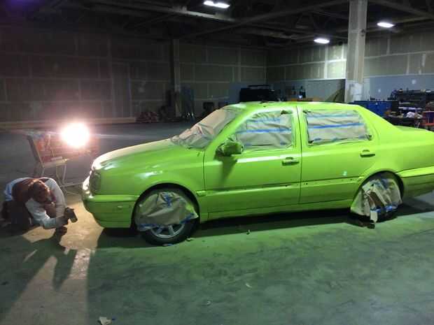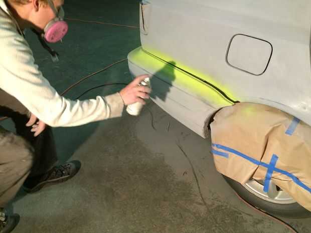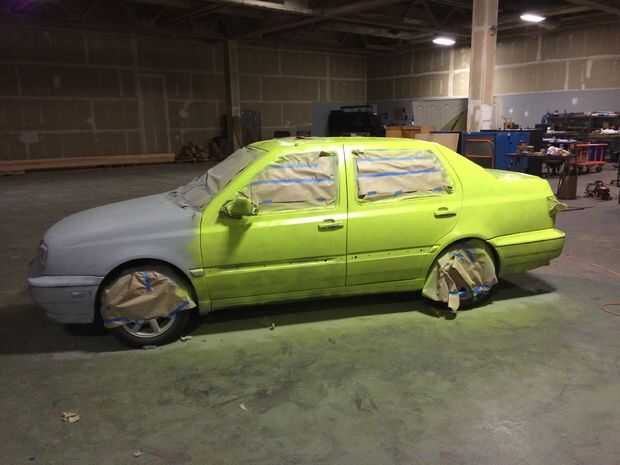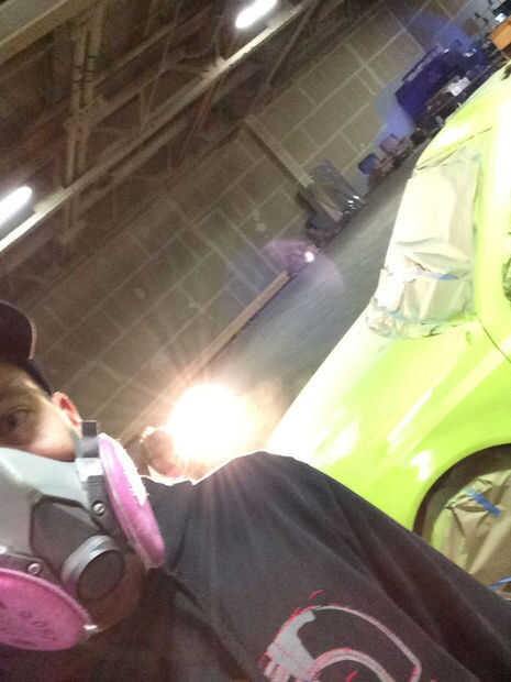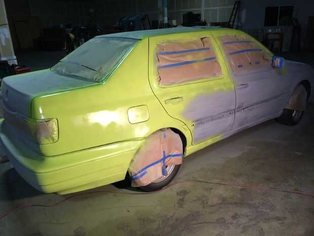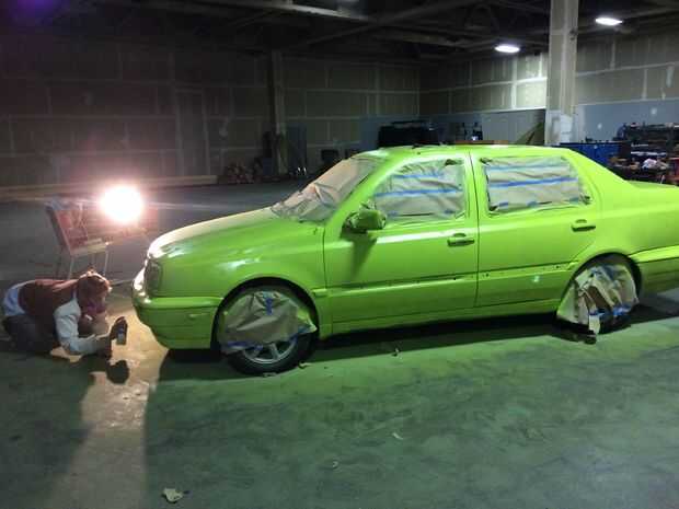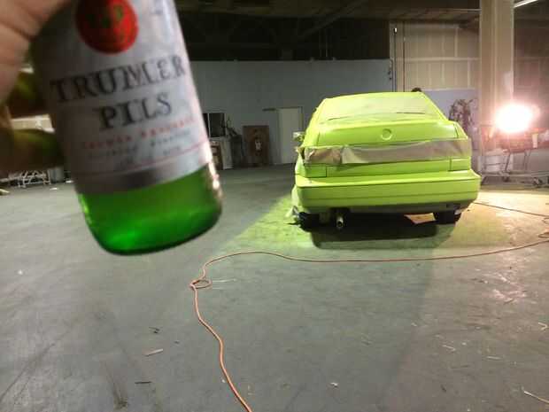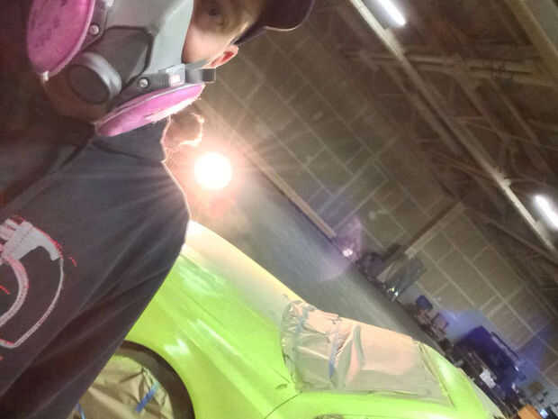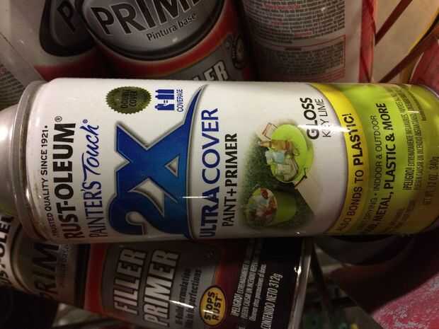 2 - empiece a rociar la parte superior de la capa. Fui a varias tiendas de suministro automotriz para encontrar una pintura de spray automotriz de alta calidad, pero no halló que llevó a la intensidad de color verde brillante Lima que estaba buscando. Home Depot llevar algo bastante cerca en un grado al aire libre plástico/metal pintura + cartilla todo en uno.