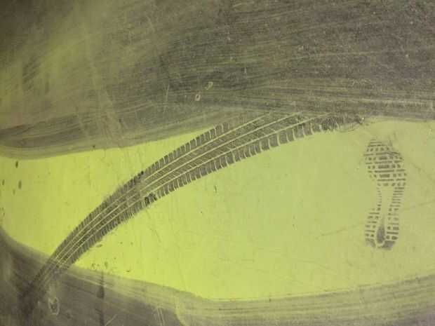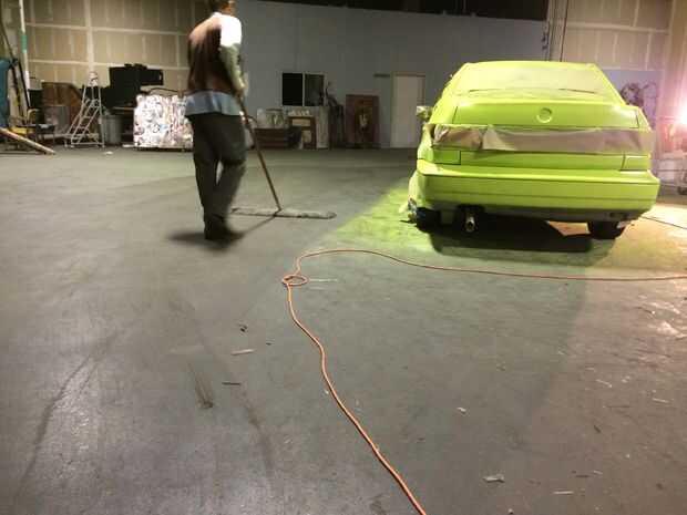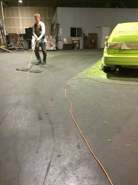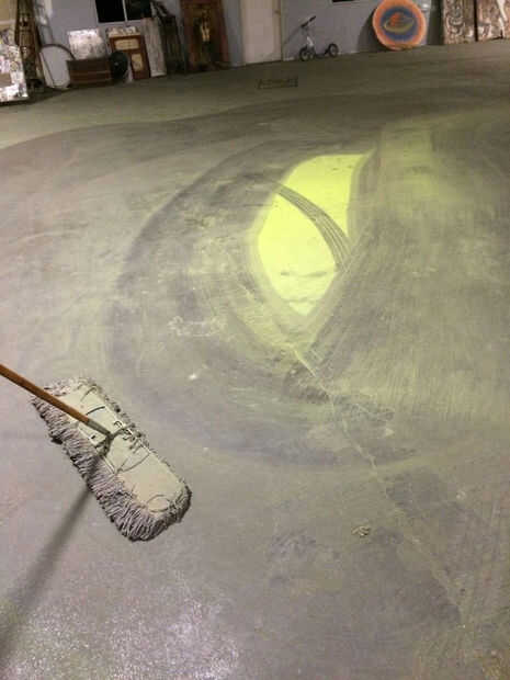 ¿6 - todo hecho? ¡ Excelente! Nuestro piso es una superficie lisa de concreto que permitió el polvo de pintura a barrió bastante fácil no dejar ninguna marca permanente.
