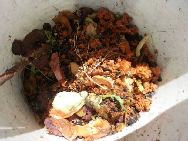 Una vez más, poner una capa de compost y materia orgánica, tales como vegetales muertos, hojas, cáscaras de fruta y recortes de la hierba. Esta capa y la capa antes atraen a los gusanos y otros insectos que aumenten la biodiversidad.