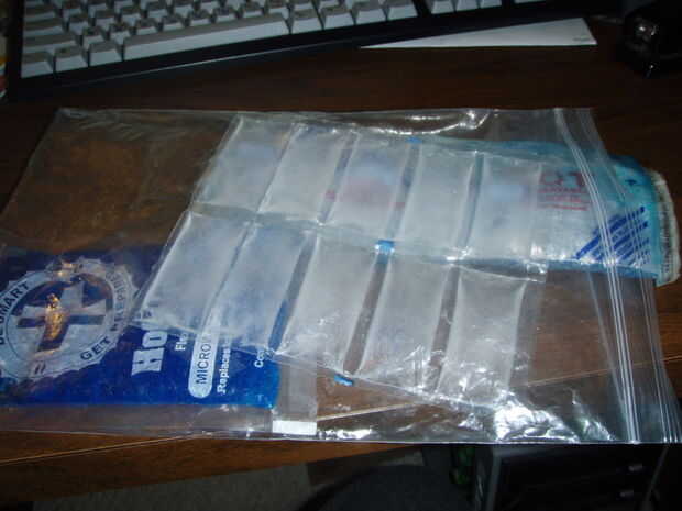 Primero poner todos los paquetes de hielo en la bolsa y espacio hacia fuera. Y también Asegúrese de que no hay aire atrapado en el interior