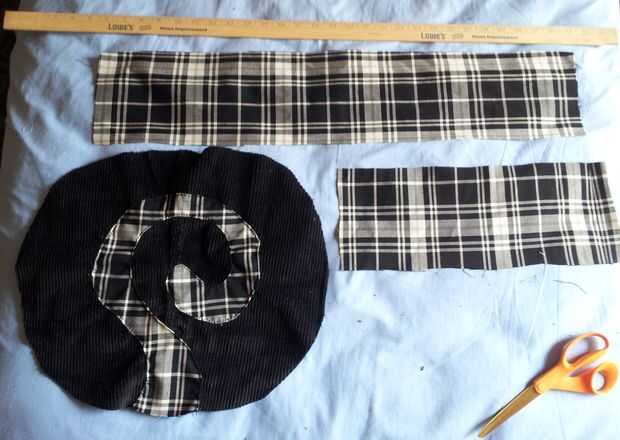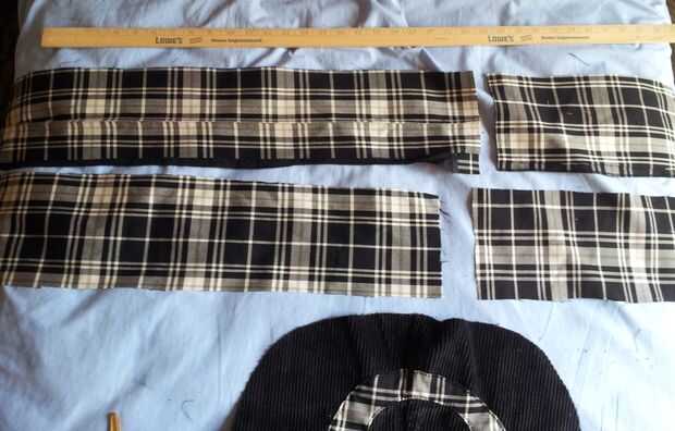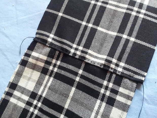 Como tomó algunos pedazos de lo cuadros para completar toda la longitud, adelanté y les cosió todos junto, teniendo cuidado de costura una vez en el interior y una vez en el exterior, que ayuda a la tela para poner más planas. También hice una puntada corriente realmente rápido-n-sucio hacia abajo los lados de los lados para mantenerlos juntos y más fácil trabajar con alfileres, coser, etc..