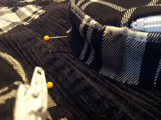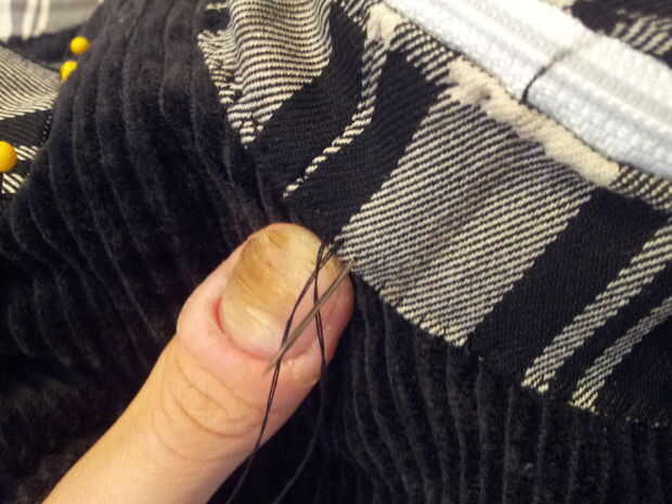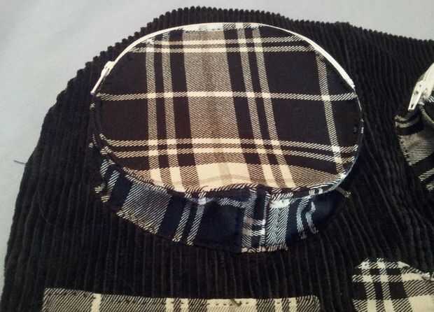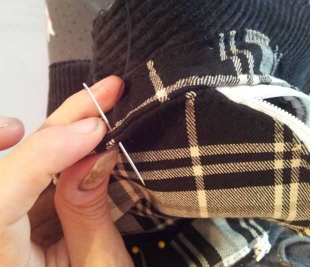 , ' Puesto que hemos cosido el forro en la parte delantera y se volvió hacia el lado derecho hacia fuera y realiza la costura de segunda, eso significa que es listo para poder coser los bolsillos ojo! con de. 25" escondido por debajo, cubrió a todo el camino alrededor de cada bolsillo e hizo una puntada del azote, inicialmente. Siguió con una puntada corriente.