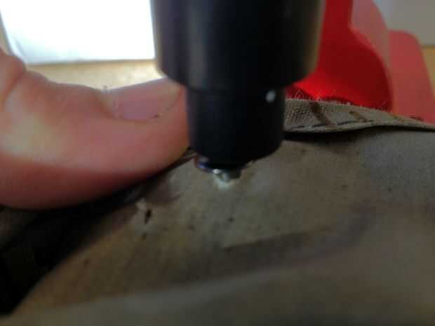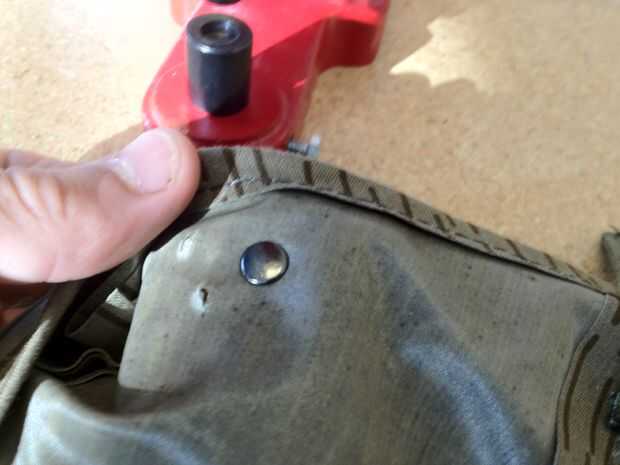 Entonces usando la prensa de mano puse los remaches en el lugar.