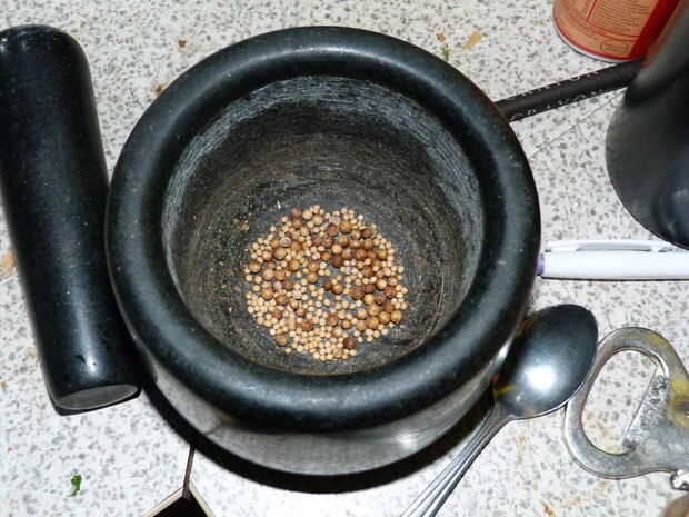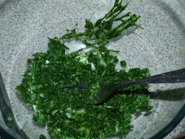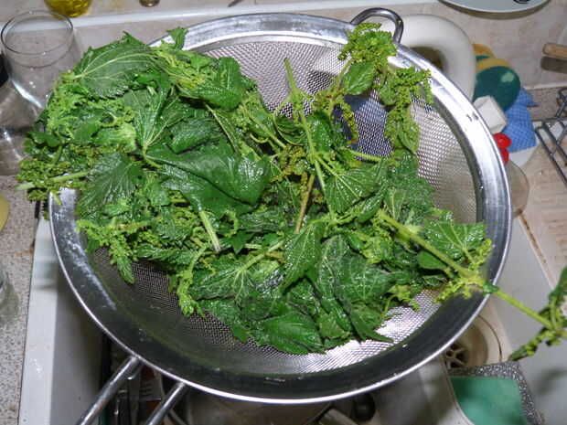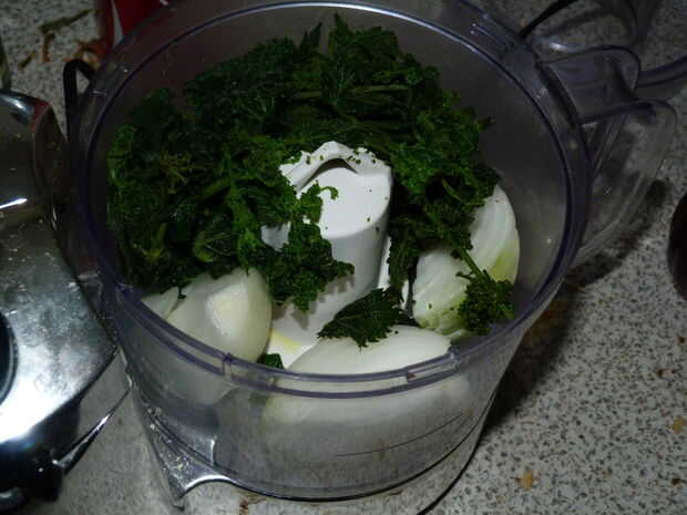 Mientras que están hirviendo, puede moler las semillas en un mortero con un mortero y pelan y cuarto de la cebolla y el ajo. Dan las cebollas y ajo un zumbido rápido en el procesador de alimentos, drenar las ortigas con un colador y agrega a la cebolla y el ajo con las especias. Dar la totalidad del lote a ir bien en el procesador hasta que se convierten en una pasta.