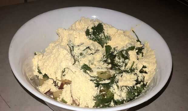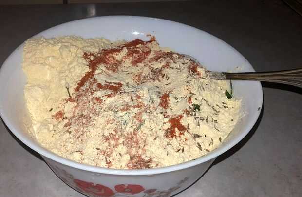 En un cuenco, tomar todos los ingredientes excepto el aceite y el agua.