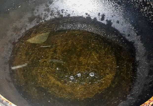 Tomar el aceite en una sartén honda y fijar el fuego a medio. Espere a que el aceite a calentar.