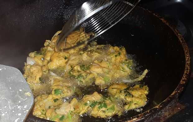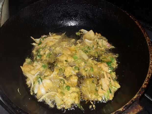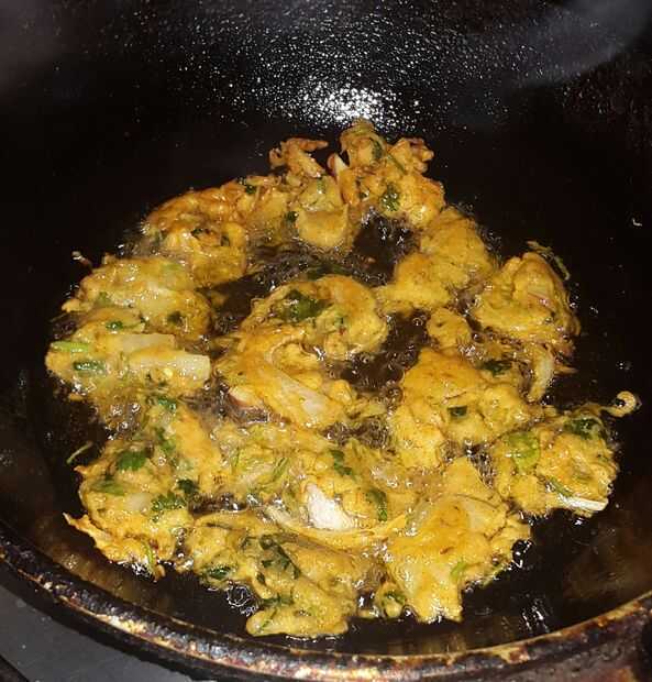 Pakoras suelen tener unos 5 minutos para freír. Esperar y mantener control de la dureza del exterior. Cambiar la llama por consiguiente. Cuando las pakoras son bastante duros, convierten el lado opuesto.