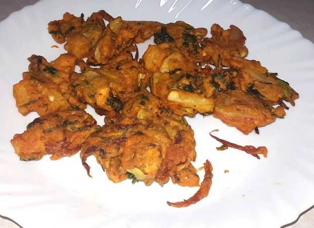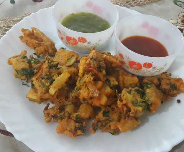 Pakoras vegetales es un bocado muy popular de India salado. Aunque sean profundas frito, pakoras tienen mucho valor nutritivo debido a la variedad de verduras frescas, especias y pasta hecha con harina de guisante del polluelo. Harina de guisante del