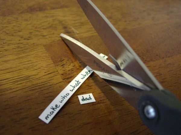 Personalizar tus palabras en su testamento, incluir nombres y lugares personales a usted amigo. Una vez que ha escrito tus palabras en las tiras de imán, cortarlas.