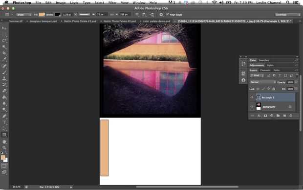 • Seleccione la herramienta Rectángulo y dibuje un swatch de tamaño apropiado. El color de esta primera muestra debe rellenar automáticamente.