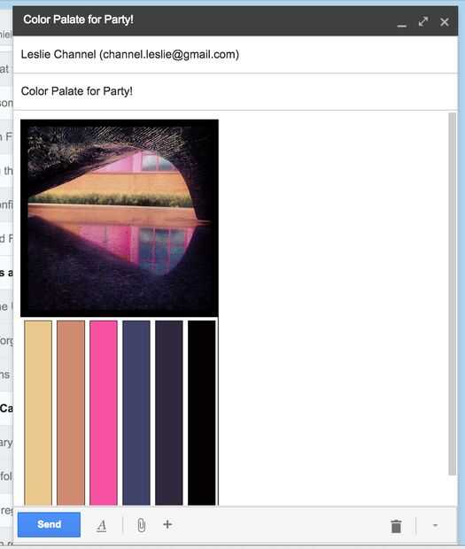 De los paladares que has creado, elija el que más te guste. Guárdalo (me gusta ahorrar como de JPEG) y la imagen por correo electrónico a ti mismo.