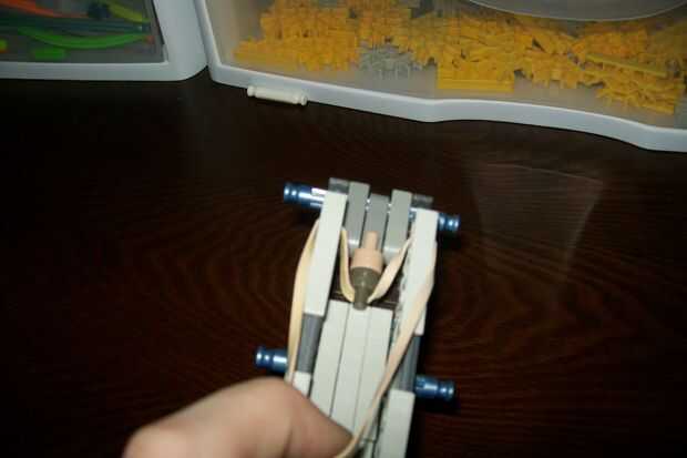 Foto 1: Añadir esta banda Cuadro 2: Añadir la banda al gatillo Cuadro 3: Tirón de la banda como esta Cuadro 4: Hacer la bala Cuadro 5: Ajustar la bala en como tal.