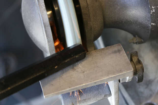 Usando una lijadora de banda o muela los cantos del corte final para que ya no está afilada.