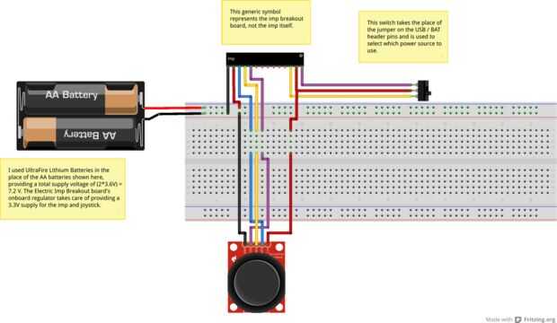 Cuando tengas las piezas necesarias, mira el esquema y obtener una idea de lo que vamos a hacer. Empezaremos poniendo algunos cables en la placa de arranque electric imp.