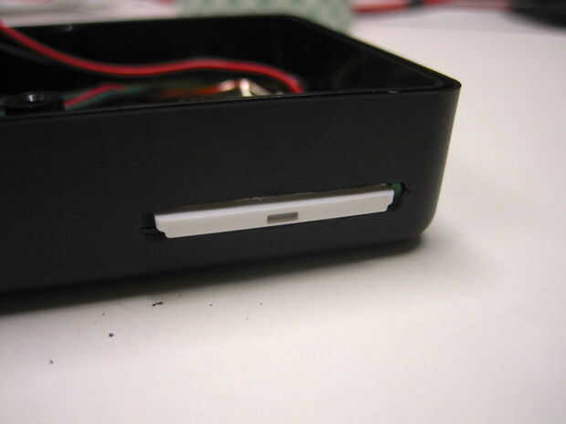 IMPORTANTE: ESTAMOS EL IMP DE MONTAJE Y CORTE LA RANURA LA * TAPA * LA MITAD DE LA CAJA. Es decir, la mitad con ninguna puerta de la batería. El imp se encuentra justo debajo de donde van las pilas.