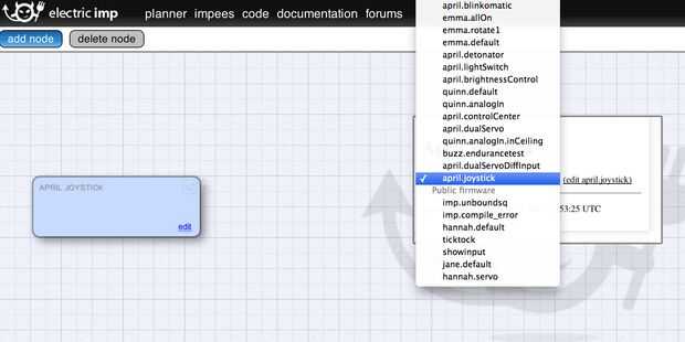 - En unos pocos segundos, el imp comenzará a funcionar el nuevo firmware y el texto en el planificador que cambiará a "APRIL JOYSTICK"