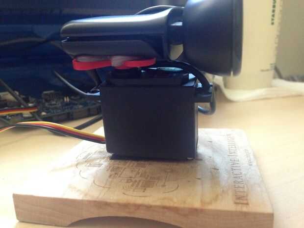 Mi motor servo vino con un montón de hélices y tuyo debe haber también. Encontrar el que mejor se adapte a su cámara. Con mi Logitech C270, la cámara cabe bien con la hélice más grande que pude encontrar.