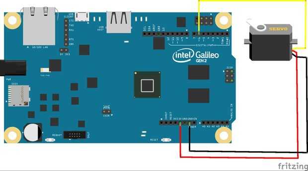 Siga la imagen esquemática adjunta arriba y conecte el Servo Motor Intel Galileo Gen 2.
