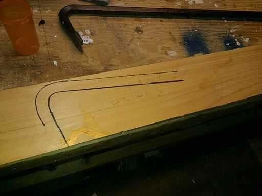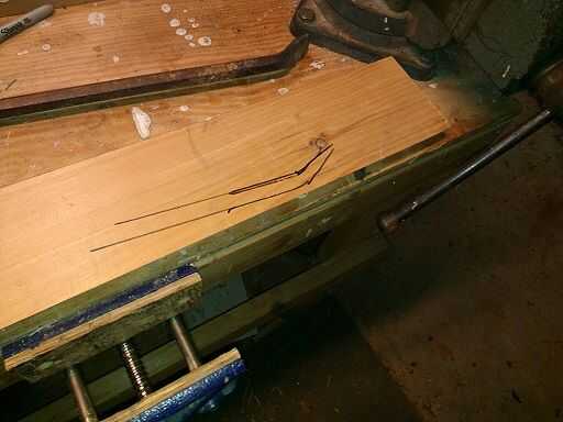 Una vez que las curvas de trazado sobre la madera, utilice una sierra de calar para cortar las piezas del patrón, dejando suficiente madera que puede doblar el tubo por el patrón. Las dos últimas fotos muestran cómo se deben cortar los patrones.