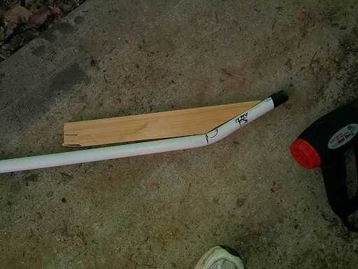 Utilice una pistola de calor para calentar el área de la curva del gancho. Noto que el plástico comenzarían a bombear hacia fuera un poco cuando estaba suficientemente caliente. Una vez que eso sucede, doble con cuidado el tubo en el patrón de la curva del gancho. Reténgalo ahí hasta que se enfría (tal vez 30-60 segundos). Repita para la curva de la palanca.