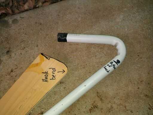 Observará en las imágenes que el extremo del gancho experimentó algunos prensado en el interior de la curva. Este fue mi primer intento donde utilizado 3/4" PVC. Cuando lo hice nuevamente con 1/2" no conseguí ninguna prensa.