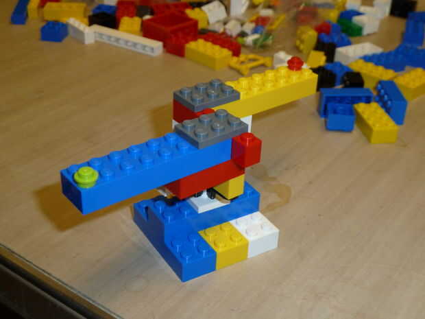 un helicóptero simple para aquellos que no tienen el pequeño lego.Paso 1: Las fotos The gray piece is a swivel to allow the rotars to spin freely