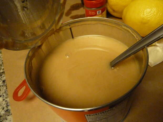 Si usas almacén comprado tahina, asegúrese de revolver bien buena antes de que se mida.  Lo coloca como mantequilla de maní orgánica, así que le dan un buen revuelo... o bien!