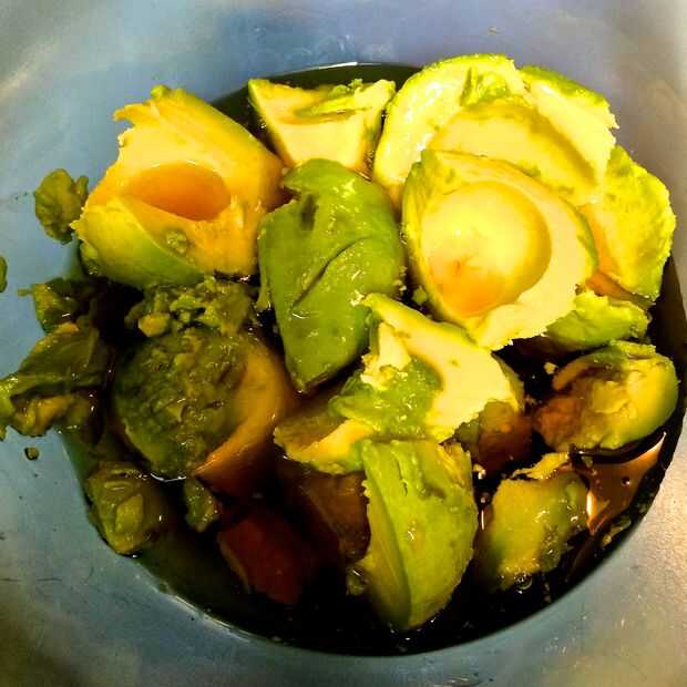 Látigo de aguacates y jarabe de arce con una batidora eléctrica hasta que quede suave.