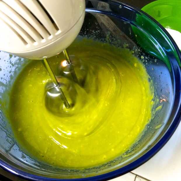 Cacao en polvo se combinan con bicarbonato de sodio e incorporarlo en la mezcla de avo, revuelve hasta combinar bien.